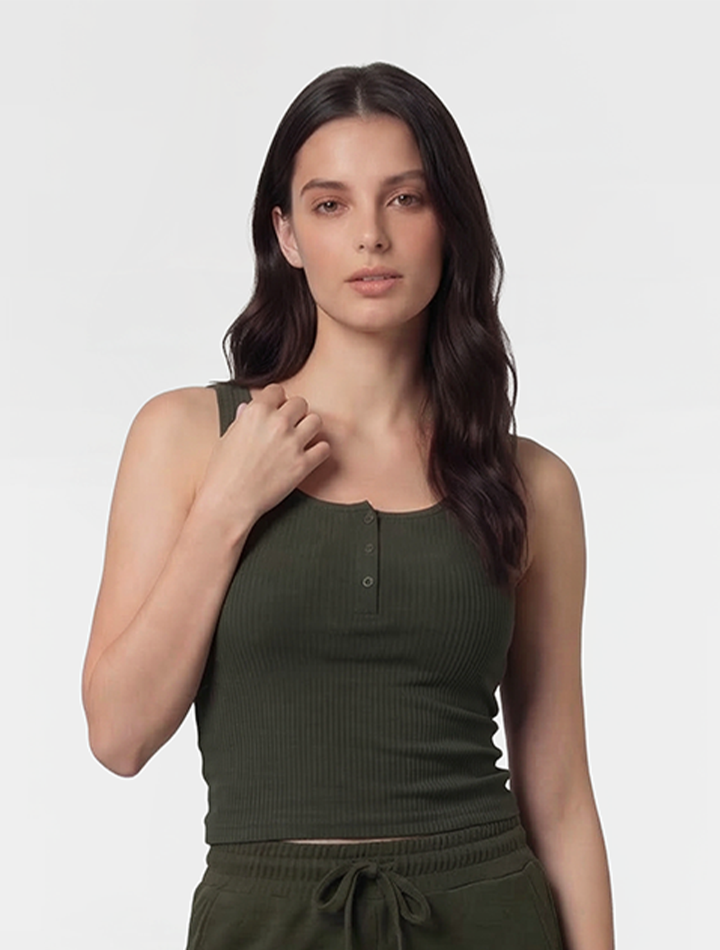 This piece features a rich, earthy Kaki tone that brings a touch of nature-inspired sophistication to your loungewear lineup. Designed with a flattering ribbed texture and a minimalist aesthetic, it’s the perfect balance between casual comfort and refined style. Whether you're pairing it with tonal joggers or your favorite denim, this top is a must-have for a grounded, chic look.