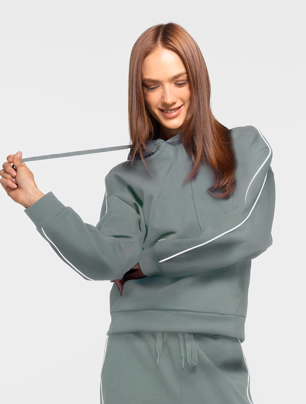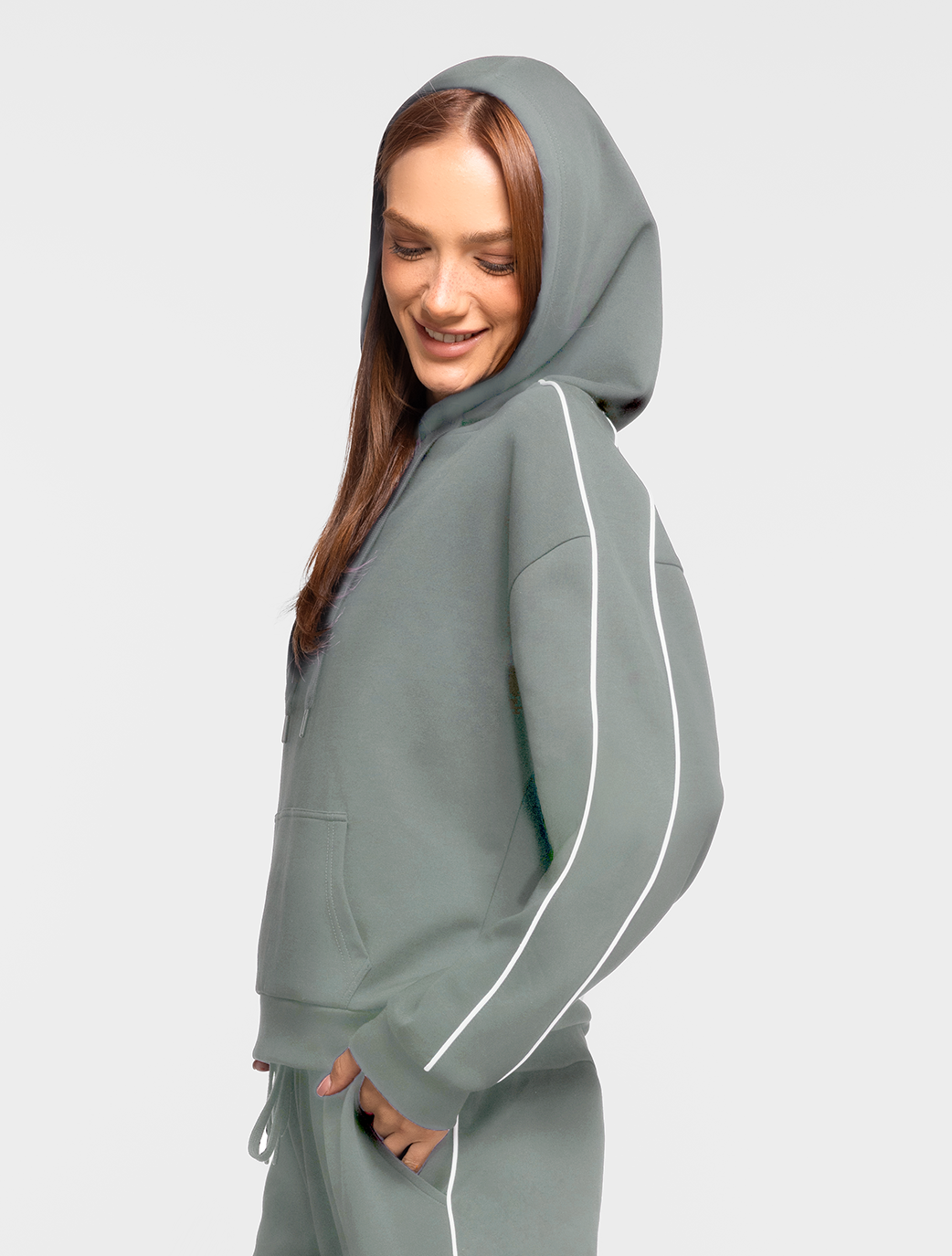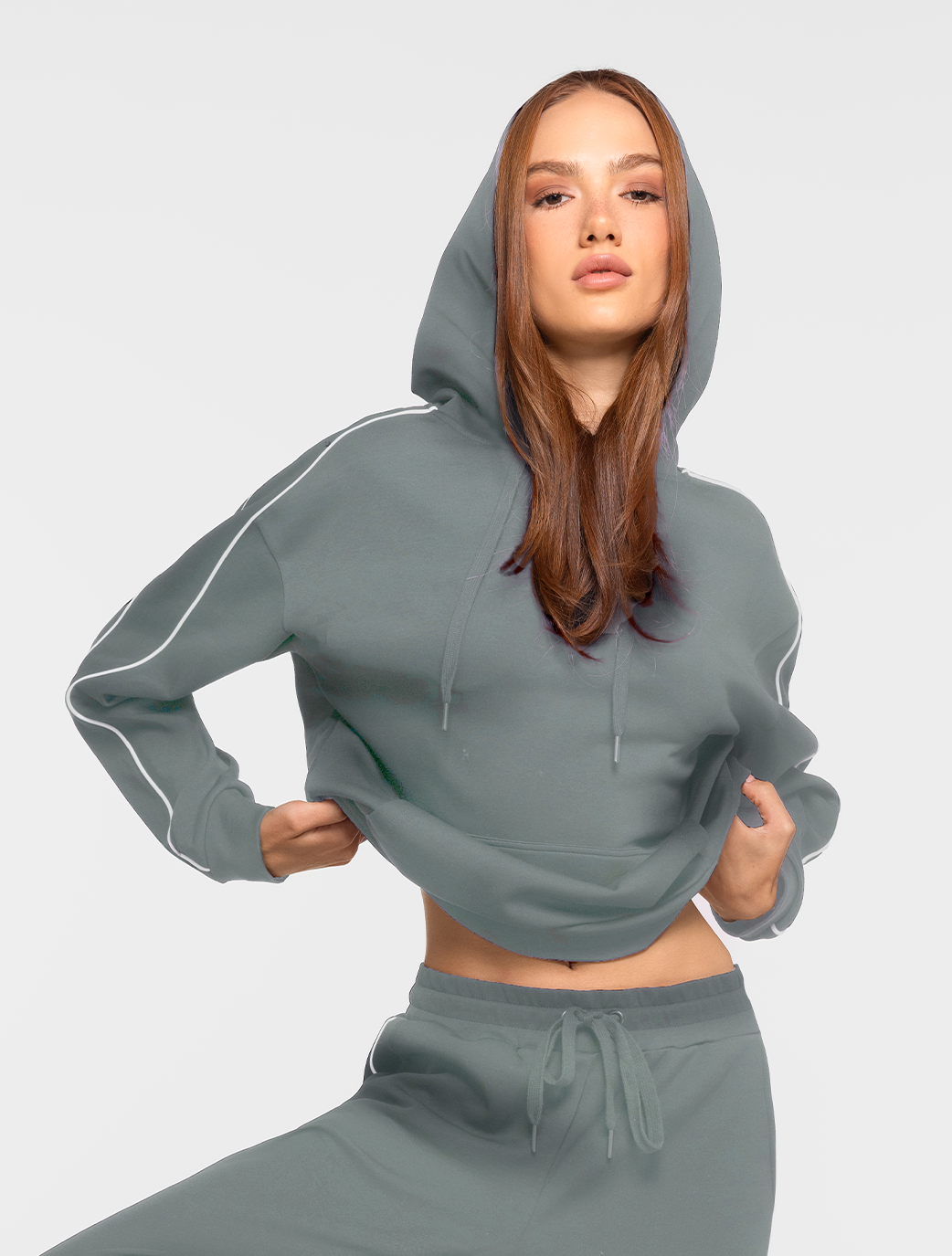 Clean lines, cozy feel. Designed with contrast piping and a roomy kangaroo pocket, the Embrace Top is your off-duty essential relaxed, refined, and ready for anything.