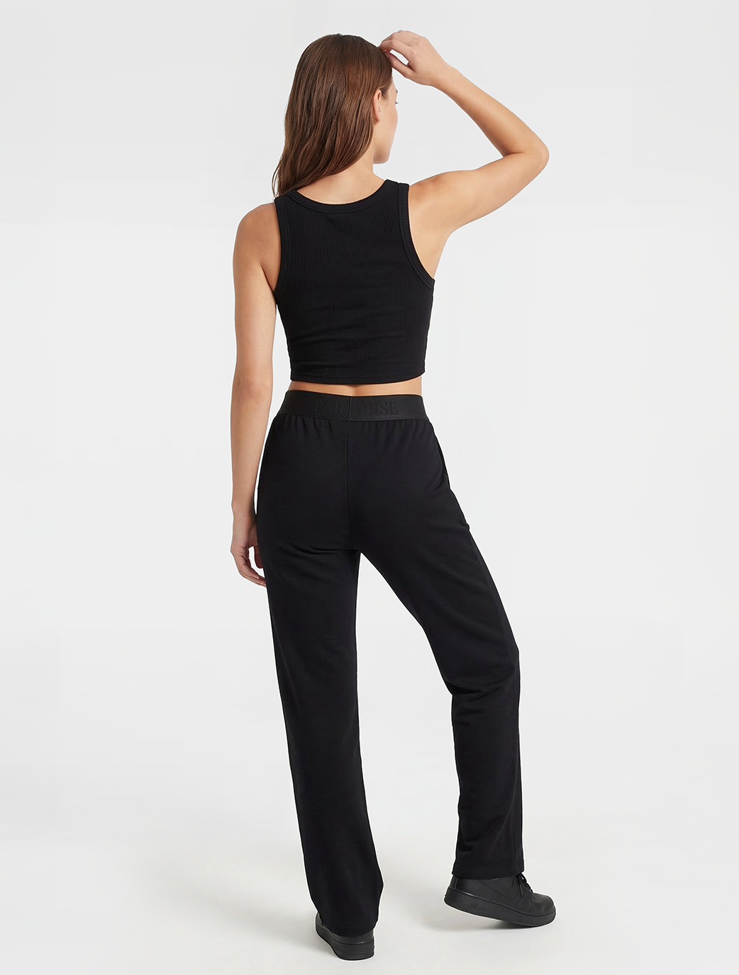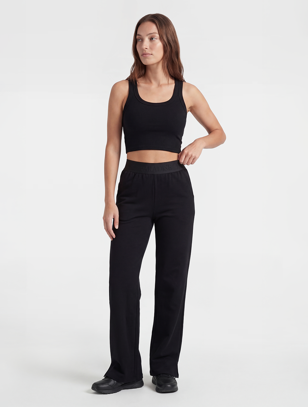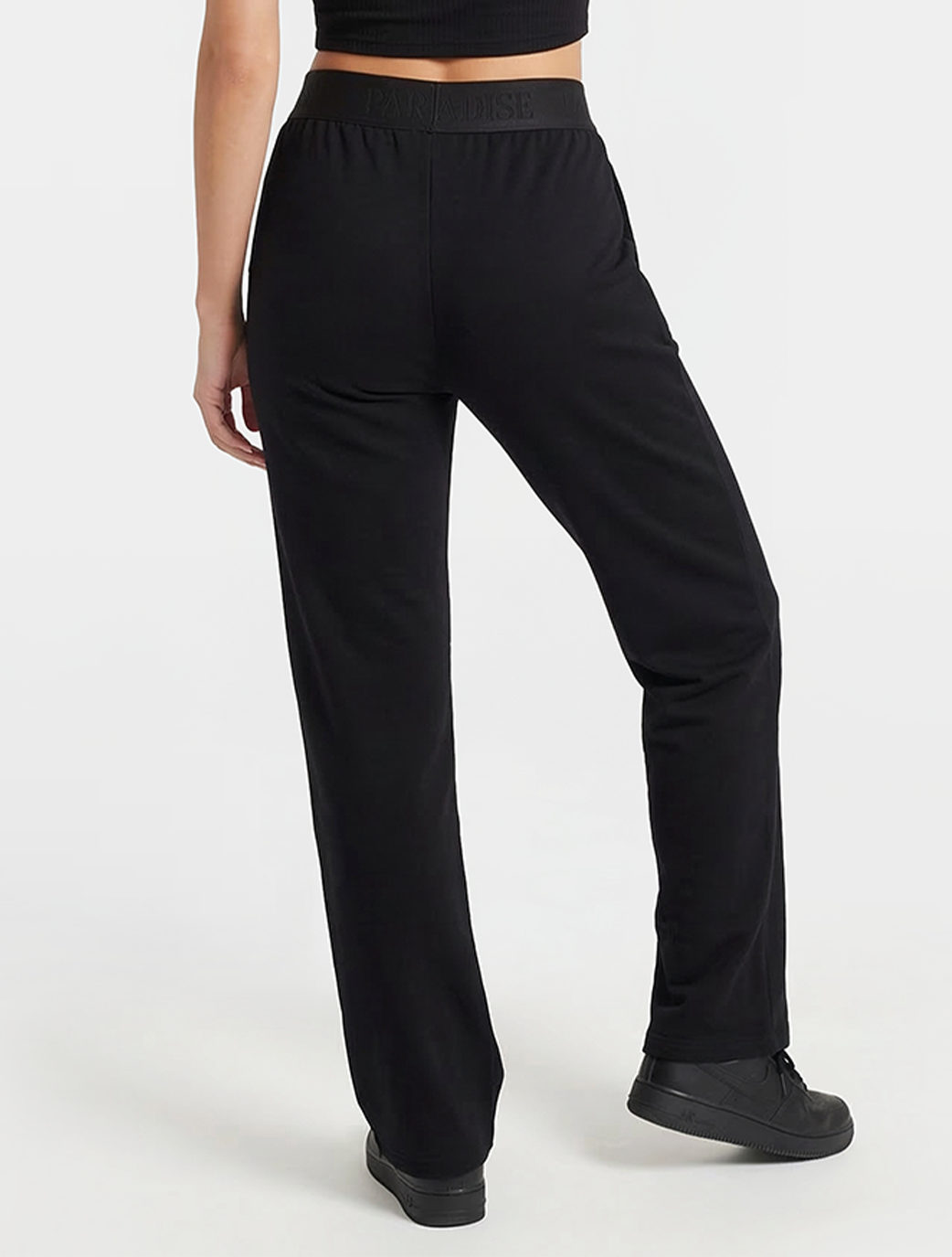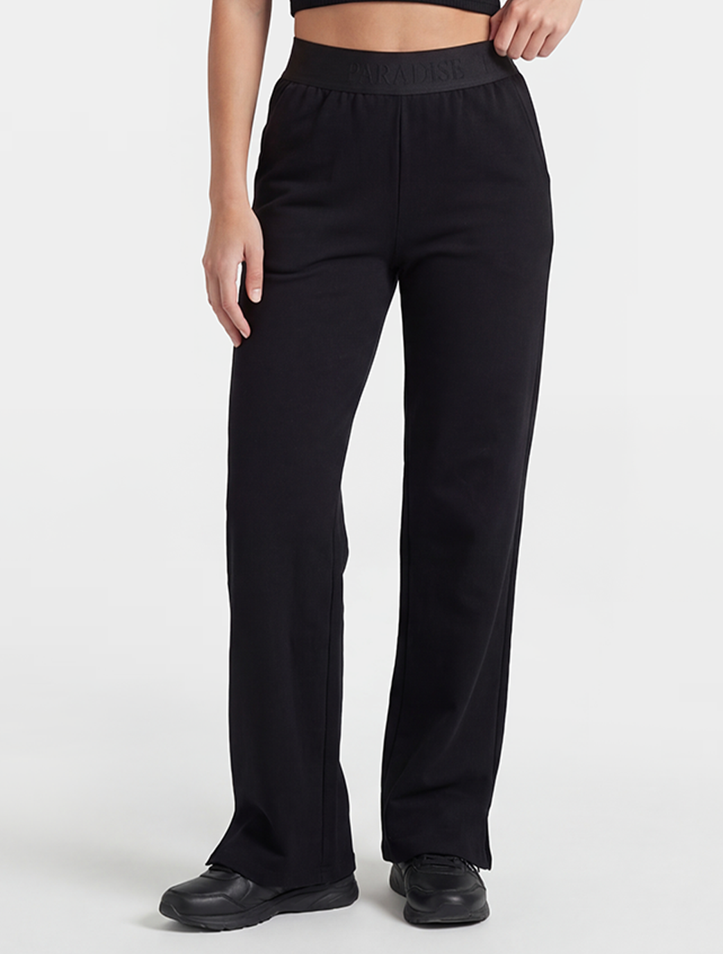 Make a statement while staying comfortable. The Fearly Pant is the perfect fusion of streetwear edge and loungewear ease. Featuring a bold, branded "Believe" elastic waistband, these pants offer a modern, sporty aesthetic that stands out. The sleek black fabric and wide-leg cut provide a flattering silhouette that moves with you, whether you're hitting the gym or the streets.