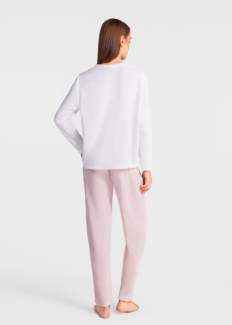 Cozy up in the soft pink Labooma pajama pants, designed for comfort and relaxation. Perfectly paired with the white Labooma top, these pants complete your adorable and comfy pajama set.