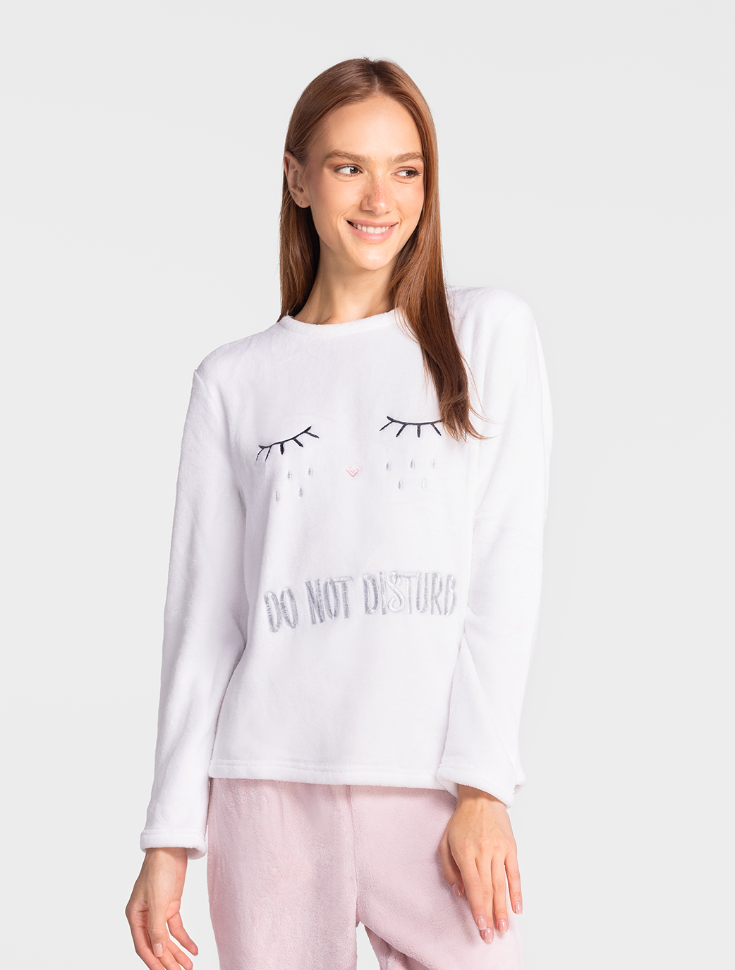 Relax in style with the Labooma white pajama top, featuring a cute sleepy face and the playful phrase “Do Not Disturb.” Made from soft, comfy fabric, it’s perfect for peaceful nights and lazy mornings.