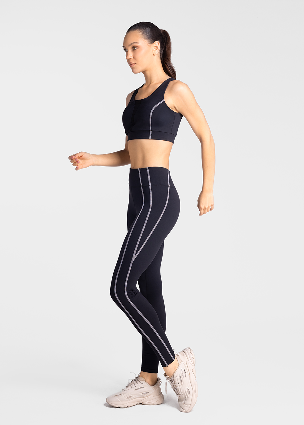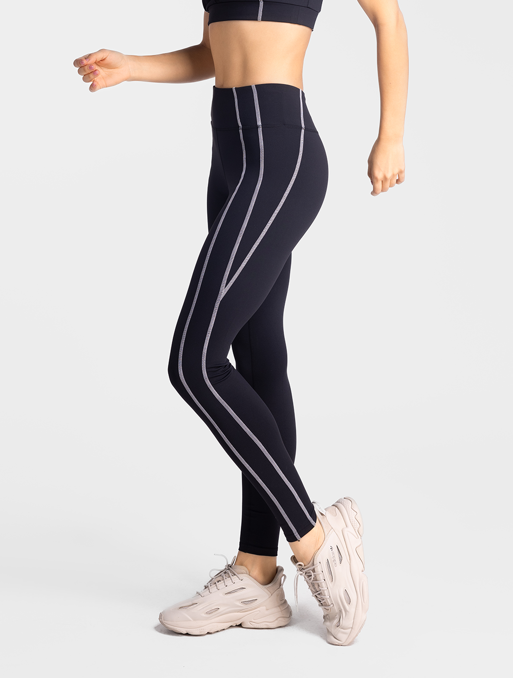 High-performance sprint leggings featuring a sleek fit, contrast seam detailing, and a supportive high-rise waistband designed for movement, comfort, and style.